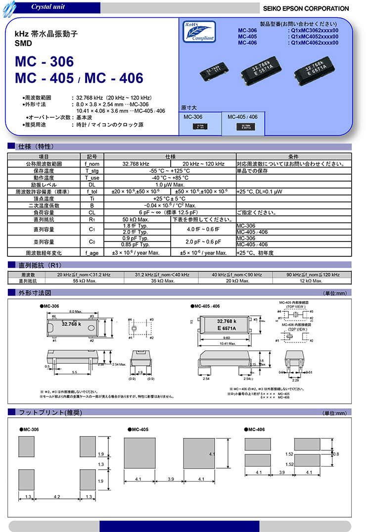 EPSON 爱普生 MC-306 贴片晶振