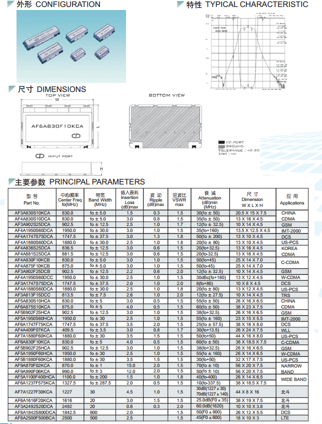 值高、温度稳定性好,插入损耗低、尺寸小、重量轻,频率范围